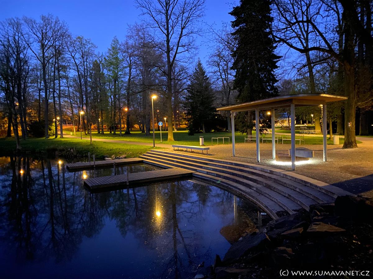 Jako první prošel revitalizací rybník v severní části - uprostřed vodní hladiny byl obnoven kruhový ostrov, kde byl vedle stávající sochy Dívka s růží od Viléma Glose osazen nový pomník v podobě kruhové lavice z žuly od klatovského sochaře Václava Fialy, který je dedikován krajinářskému architektu Václavu Weinfurterovi (Lavička pro Václava Weinfurtera).