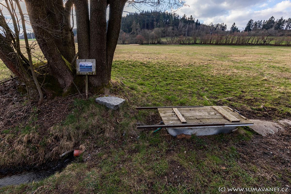 Voda pramenící na louce se shromažďuje v malém rybníčku, ze kterého pak pokračuje jako vydatný potůček. Pramenem tedy není jedno konkrétní místo, ale celá oblast.