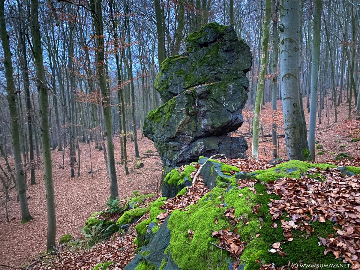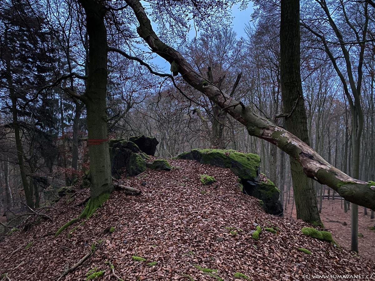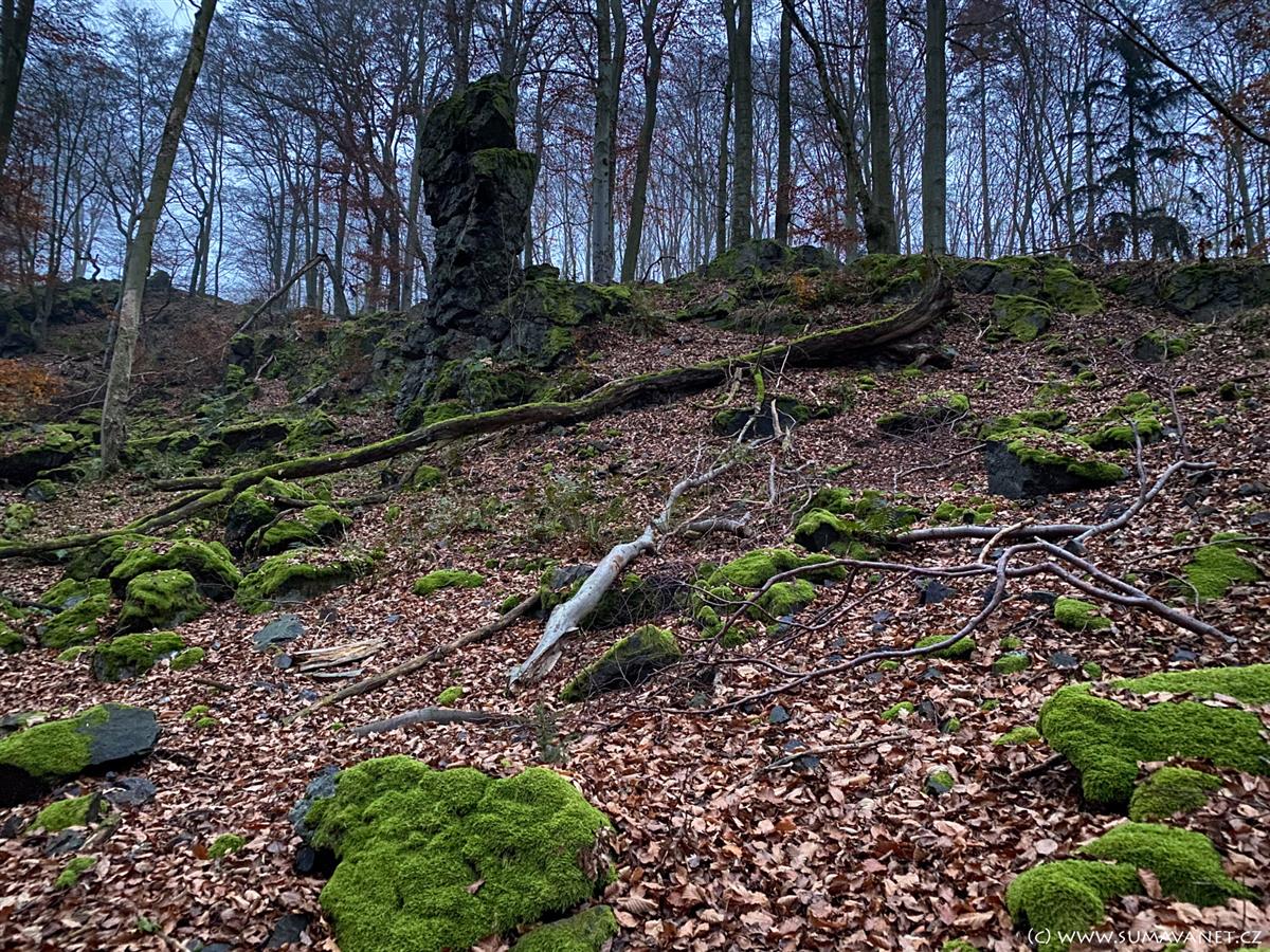V severní části se nachází výrazná skalka nazývaná Kazatelna českých bratří, která z určitých úhlů připomíná lidskou hlavu. Nedaleko cesty můžete narazit na osamělý skalní útvar zvaný Samohrd.